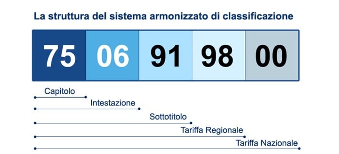 - Cifre 7-8 = specifiche europee (Nomenclatura Combinata)