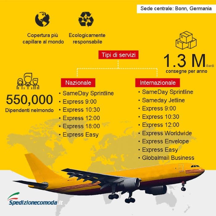 DHL is an excellent choice for international shipments precisely because of the dense international logistics network. It offers speed, efficiency and competence, supporting its offer with a full refund in the event of delivery problems and insurance on shipped goods included in the price.